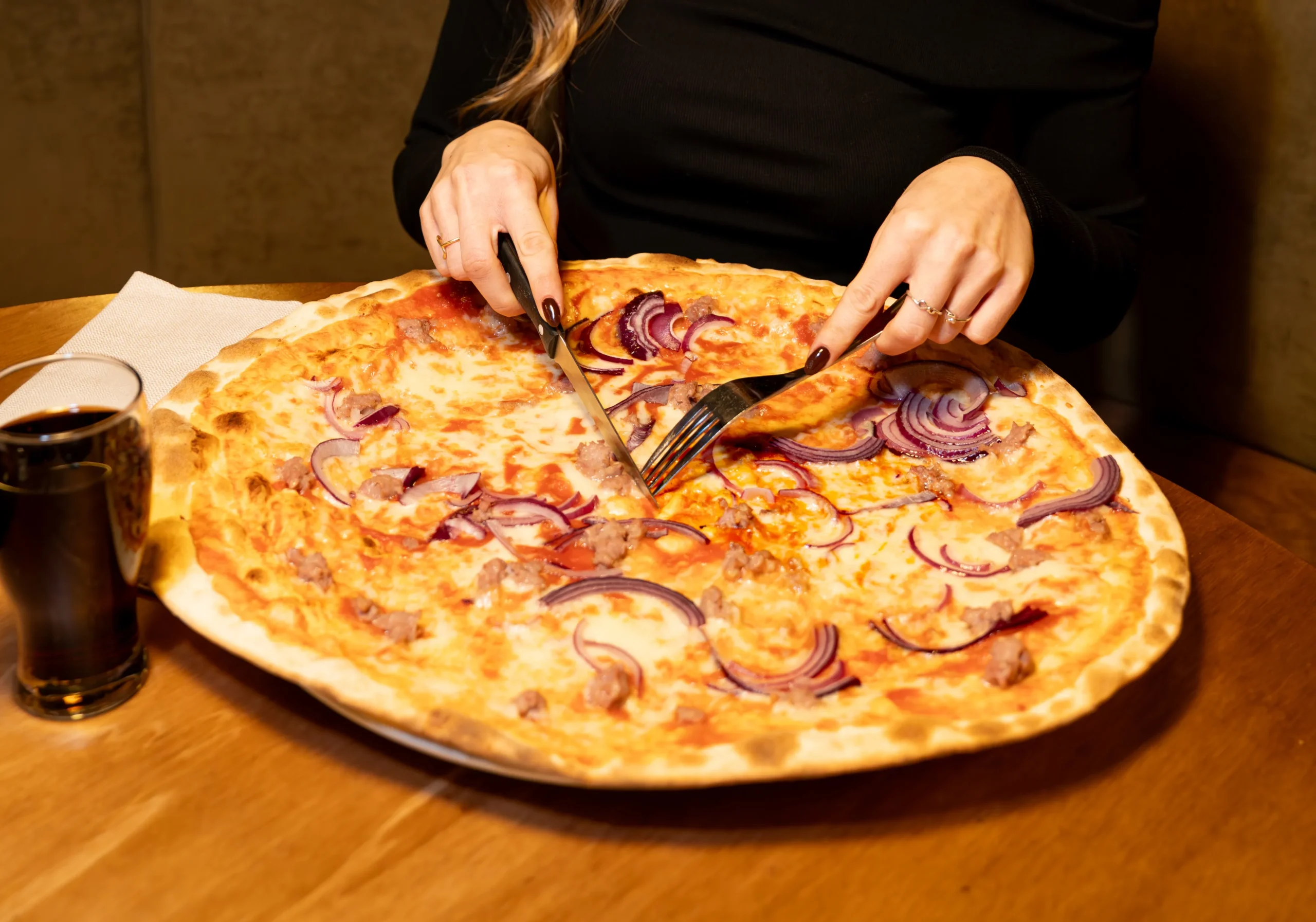 Grande, luminoso, eccentrico. All’interno, finestre alte e muri con mattoncini rossi a vista. E quel tocco vintage che non guasta mai. Lo spazio è così ampio che ci stanno pure le motociclette e un’auto d’epoca appesa al centro del locale. Chiamarlo pizzeria con cucina sarebbe riduttivo. Non chiedeteci il perché. Please.